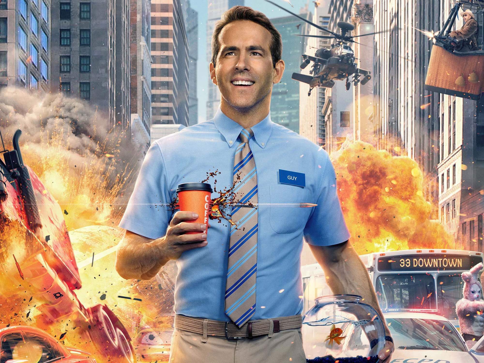 What’s the Story: In the world of Free City, Guy (Ryan Reynolds) lives his pretty average life. He greets his goldfish in the morning, grabs a hot coffee, and goes to work as a bank teller while working alongside his security guard Buddy (Lil Rel Howery) that constantly gets robbed every day. But something in his mind clicks where he expects more out of life. That all seems normal to him until it turns out Guy is known as an NPC (non-player character) in an entire popular video game world where the users are living it up with causing crime and violence without his acknowledgment. With no limits against him, Guy decides to be the good guy instead of a background player.