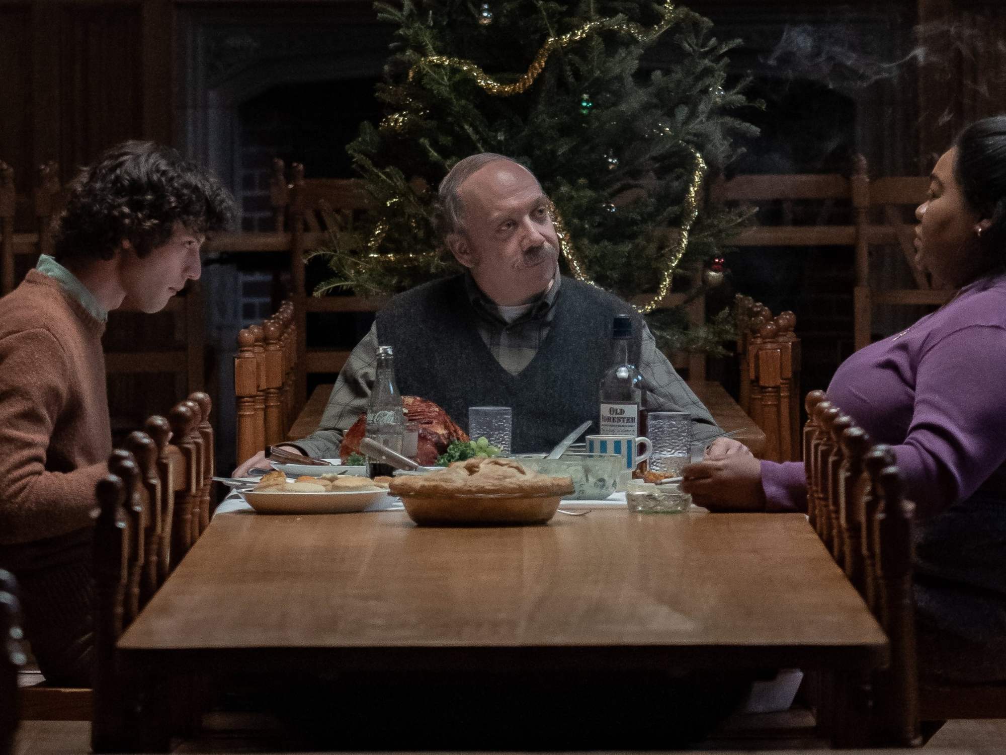 Da’Vine Joy Randolph is equally impressive as Mary, who we learn works at the school so her son could get an education, and he enlisted in the army to go straight into college. Now that he’s gone, Mary is going through the motions like grieving parents tend to be. Mary keeps Paul company while drinking and watches The Newlywed Game, which he never heard of. She’s excellent with comedic roles in the past (Dolemite is My Name), but we’ll be talking about her performance here for years. The scene that will stick out is when Mary breaks down in a kitchen at a Christmas party they’re attending.