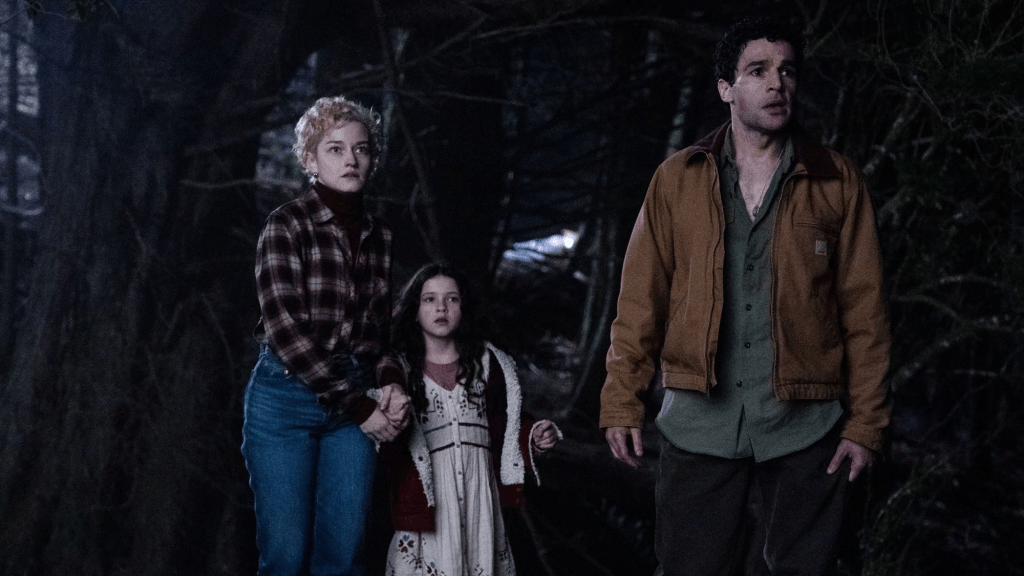 What’s the Story: Growing up in the remote Oregon mountains, Blake Levell (Christopher Abbott) had a disciplined relationship with his father, Grady (Sam Jaeger), which increased more after a mysterious creature lurked in the forest. Thirty years later, he is now a struggling writer in San Francisco, trying to have a steady relationship with his wife Charlotte (Julia Garner) and daughter Ginger (Matilda Firth), which seems to be strained. After hearing the news of his father being declared dead after he went missing, Blake decides to take his family on vacation to his childhood farm home in the hopes of patching up their relationship. But while almost there, the family is attacked by a strange animal swerving off the road, crashing into a tree, and eventually scratching Blake’s arm. Once they seek shelter in the farmhouse, Blake becomes ill quickly, and he sees himself changing in ways he couldn’t imagine.